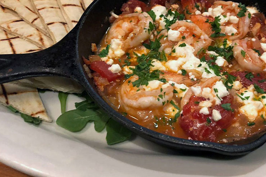Shrimp with a rich, tangy tomato sauce, infused with garlic, onions, and a touch of Ouzo for depth. Topped with crumbles of creamy feta cheese. Served with garlic bread.